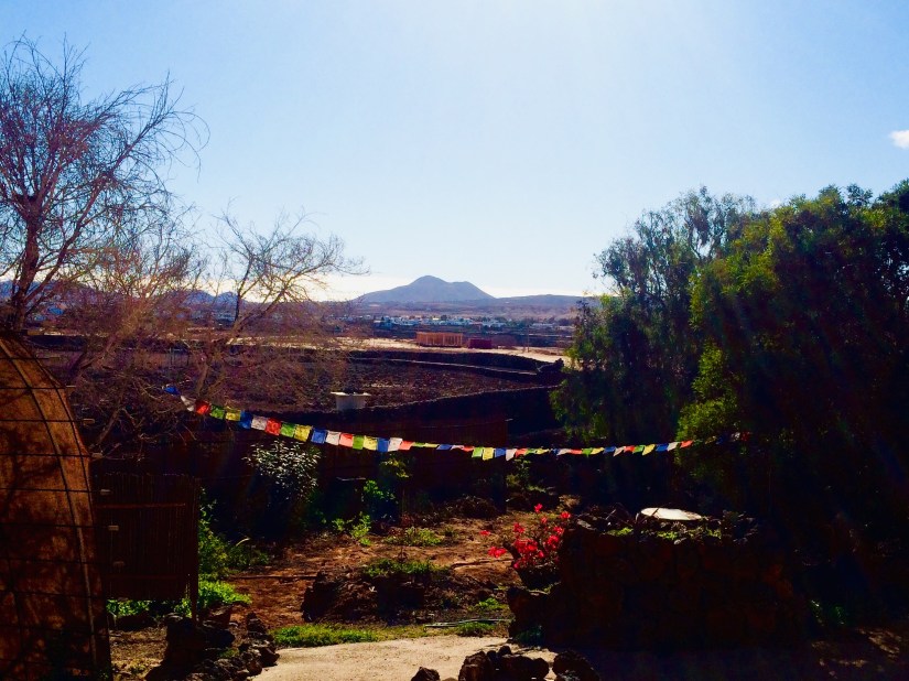 That morning, while I was pegging out the washing in the early sun, I felt a gentle breeze sweep across the garden from the direction of Mount Tindaya in the East; lifting my prayer flags and making them dance. The silent voice inside me whispered “Something is coming…” and, devoutly human, I said to myself “Maybe this means that Love is heading my way very soon!”
