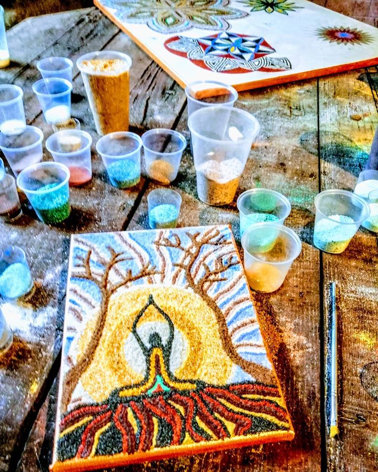 When I arrived at the house there was no-one in sight and it was eerily quiet. The American woman had talked about a thronging and vibrant community, with children and animals running round, paintings and hand-crafted items on display and a welcoming, “buzzy” vibe that felt infectious and which drew you in. I began to ask myself if I was at the right place. But outside the house was a lovely, under-cover seating area, with stools fashioned from logs of wood, Bohemian-type furniture and large, patterned cloth covers draped all around, and that gave me heart that I might be where I was supposed to be.