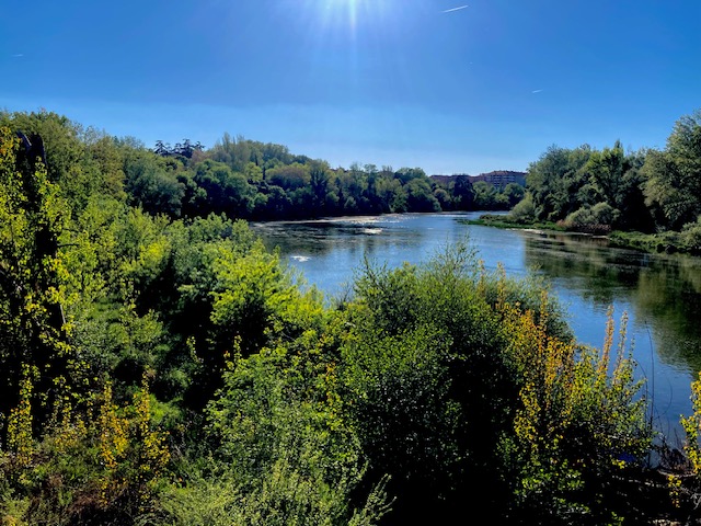 I’ve got into the habit of rising early (a legacy of years of Camino walking) and going down to the river path to walk and jog for an hour at the start of each day. It’s a joy to feel the coolness of the morning, to hear the birdsong, and to listen to the gentle burble of the river as it courses over rocks and winds along through weeds and reeds beside me, meandering on its way.